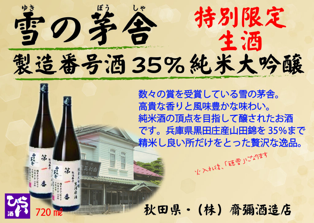 【超レア】雪の茅舎 製造番号酒 35%純米大吟醸 ◎姫路で日本酒・地酒・獺祭・あらごし梅酒・獺祭焼酎を買うなら地酒専門の、姫路しののめ『酒ひらい』 by株式会社平井商店