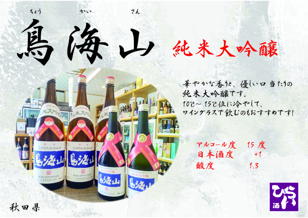 鳥海山 純米大吟醸 ◎姫路で日本酒・地酒・美酒の設計・雪の茅舎・獺祭焼酎を買うなら地酒専門の、姫路しののめ『酒ひらい』 by株式会社平井商店