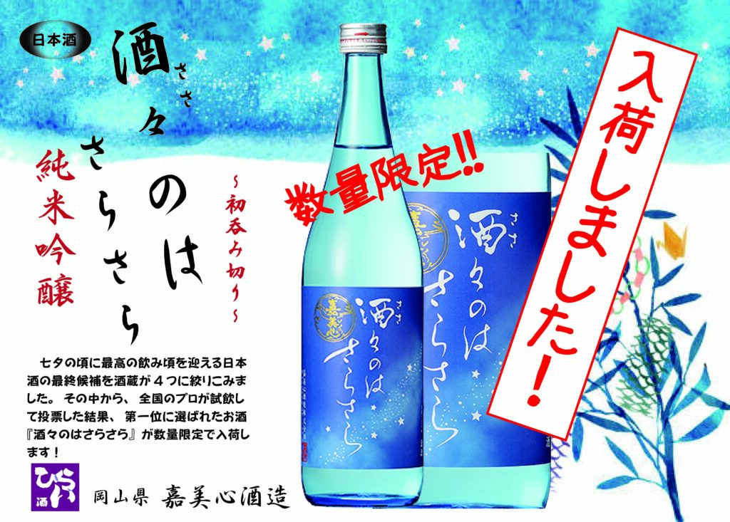 酒々のはさらさら~♪ 入荷しました~◇☆彡嘉美心【ささのはさらさら】◎姫路で日本酒・地酒・雪の茅舎・あらごし梅酒・獺祭焼酎を買うなら地酒専門の、姫路しののめ『酒ひらい』 by株式会社平井商店