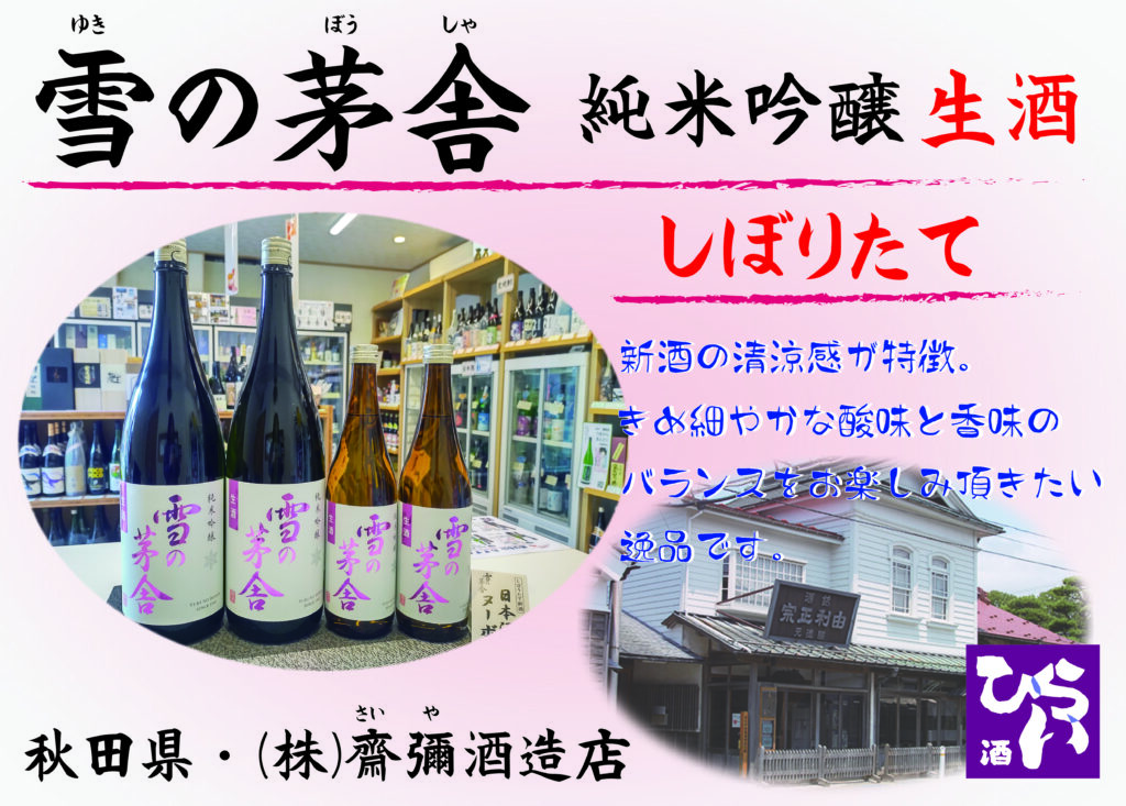 秋田の銘酒『雪の茅舎』ゆきのぼうしゃ 純米吟醸 生酒 日本酒ヌーボー入荷 ◎姫路で日本酒・地酒・獺祭・あらごし梅酒・獺祭焼酎を買うなら地酒専門の、姫路しののめ『酒ひらい』 by株式会社平井商店