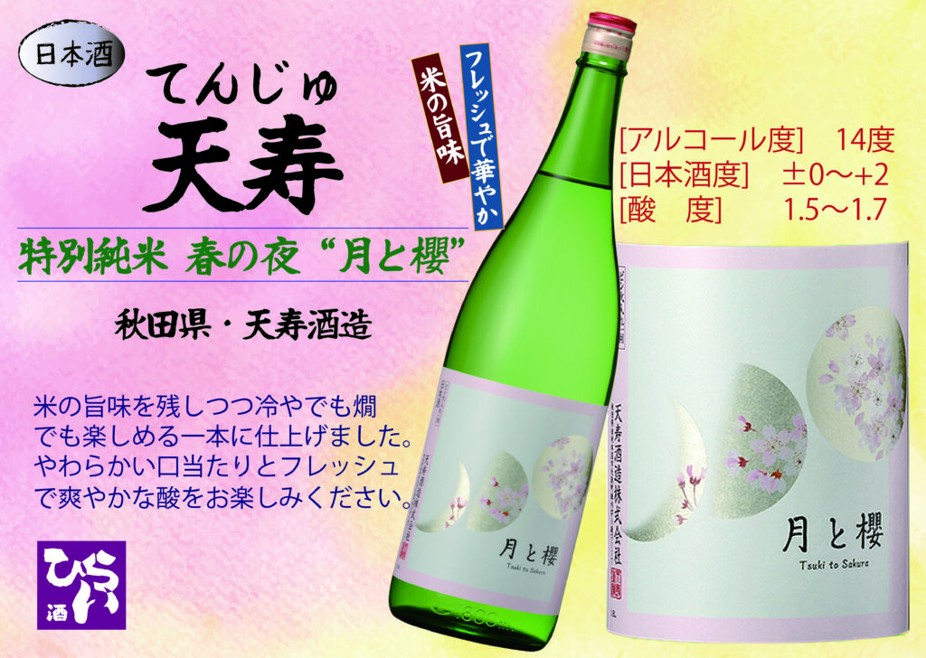 天寿 特別純米 春の夜”月と櫻” ◎姫路で日本酒・地酒・獺祭・あらごし梅酒・獺祭焼酎・まんさくの花を買うなら地酒専門の、姫路しののめ『酒ひらい』 by株式会社平井商店
