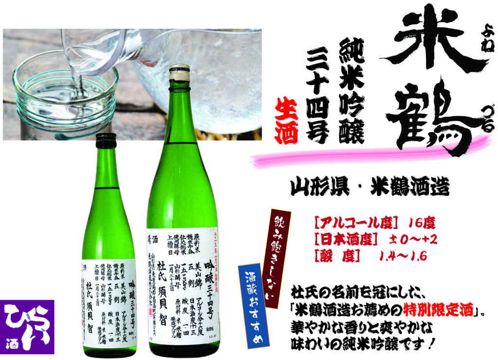 米鶴 純米吟醸 「三十四号」生酒 ◎姫路で日本酒・地酒・獺祭・あらごし梅酒・獺祭焼酎・まんさくの花を買うなら地酒専門の、姫路しののめ『酒ひらい』 by株式会社平井商店