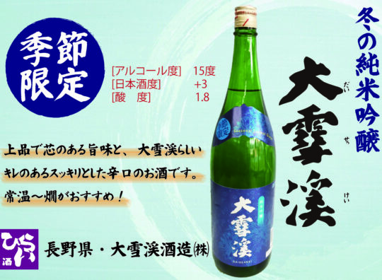 毎年人気! 大雪渓 純米吟醸 ◎姫路で日本酒・地酒・獺祭・あらごし梅…