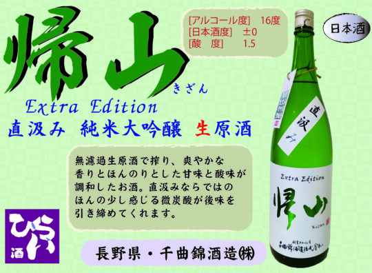 帰山 純米大吟醸生原酒 直汲み ◎姫路で日本酒・地酒・獺祭・あらごし…