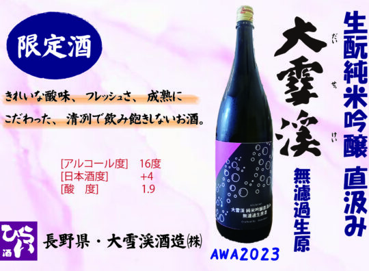 大雪渓 純米吟醸直汲み 無濾過生原 AWA2023 ◎姫路で日本酒・地…