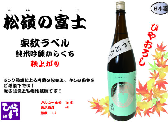 松嶺の富士 ひやおろし ◎姫路で日本酒・地酒・獺祭・雪の茅舎・獺祭焼酎…