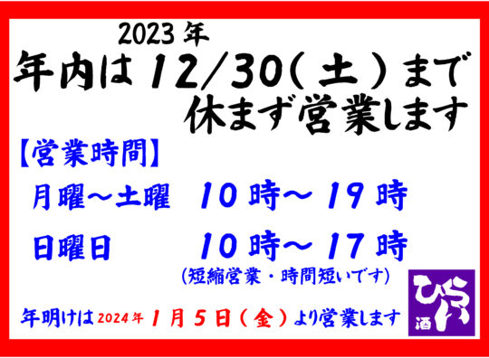 ※年内は休まず営業いたします! ◎姫路で日本酒・地酒・獺祭・雪の茅舎・…