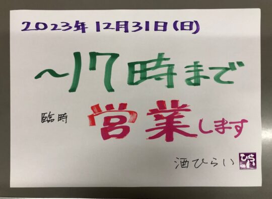 本日、~17時まで営業します(臨時) ◎姫路で日本酒・地酒・獺祭・雪の…